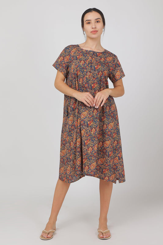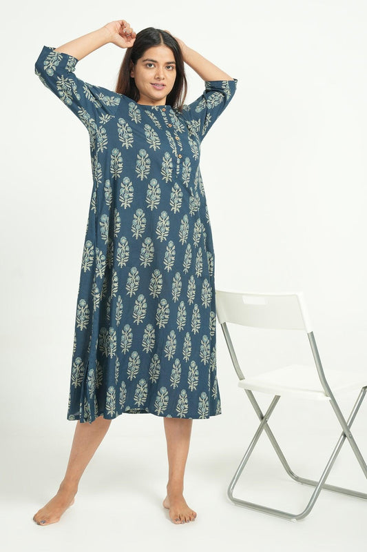 Blue Cotton Butta Print Nighty | Maternity Gown
