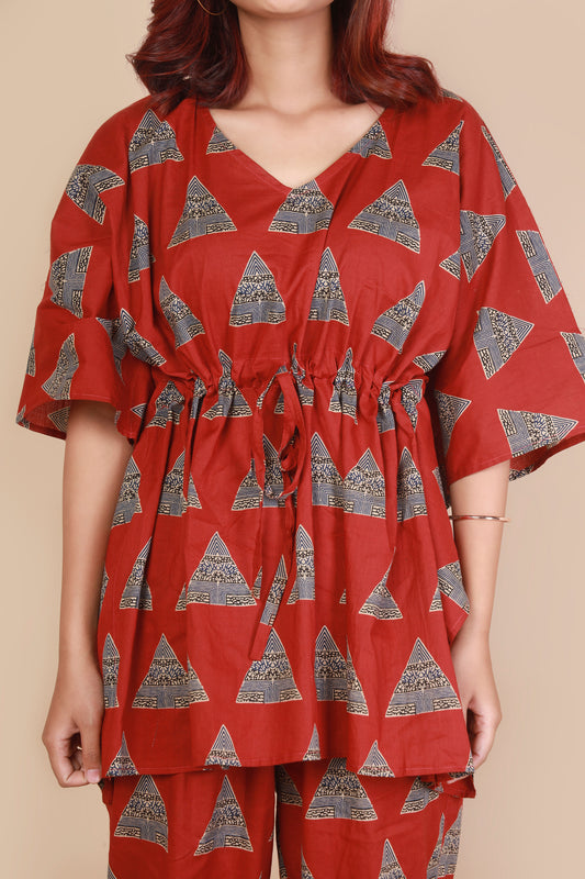 Red Geometric Print Kaftan Cotton Co-ord Set