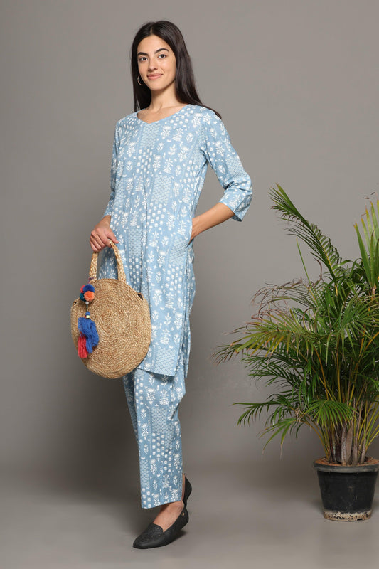 Blue Ethnic Motif Butta Print Cotton Co-ord Set