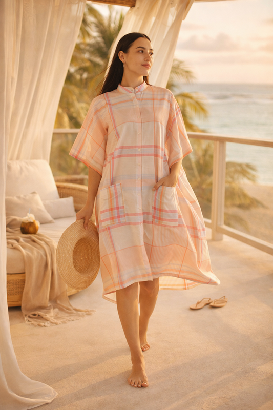 Peach Cotton Checks Kaftan