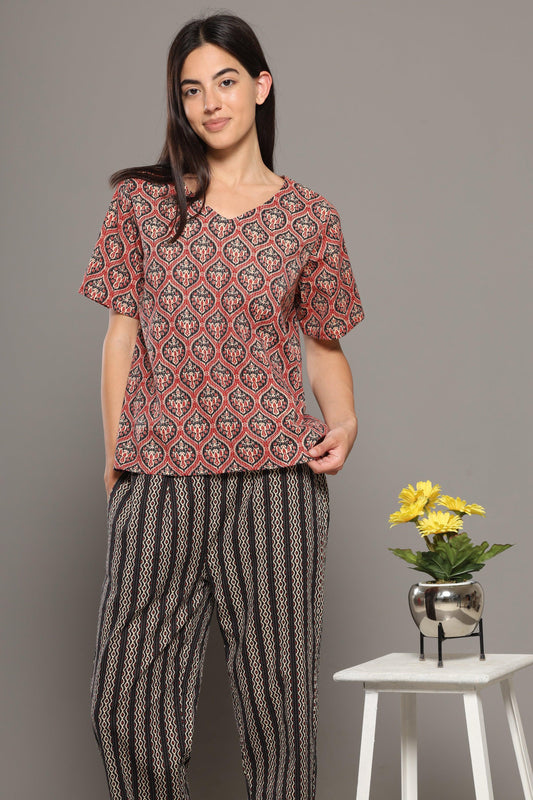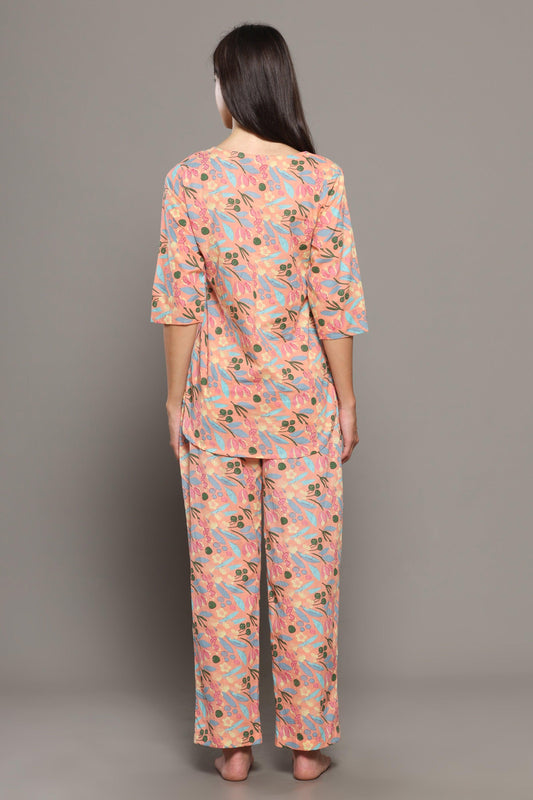 Peach Floral Cotton Printed Loungewear Co-ord Set