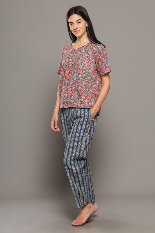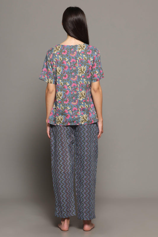 Blue Pink Cotton Printed Loungewear Co-ord Set