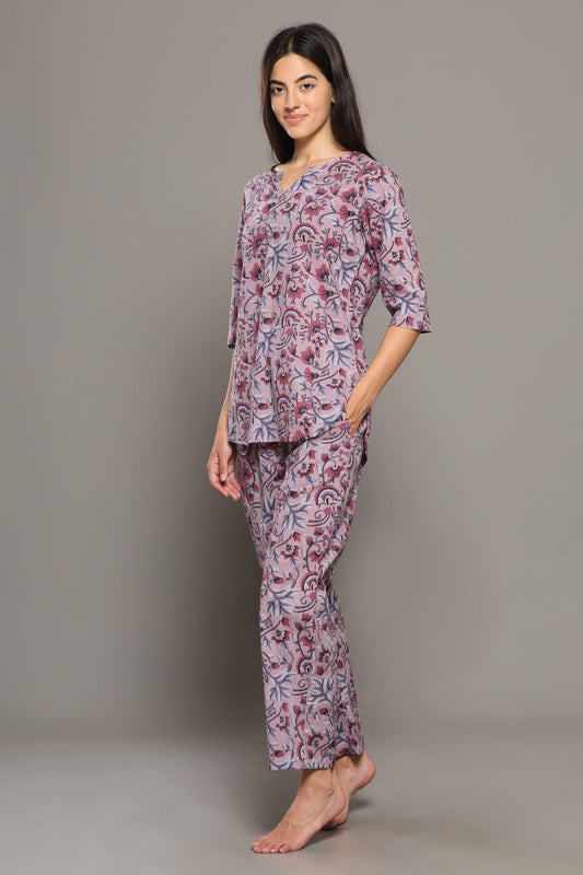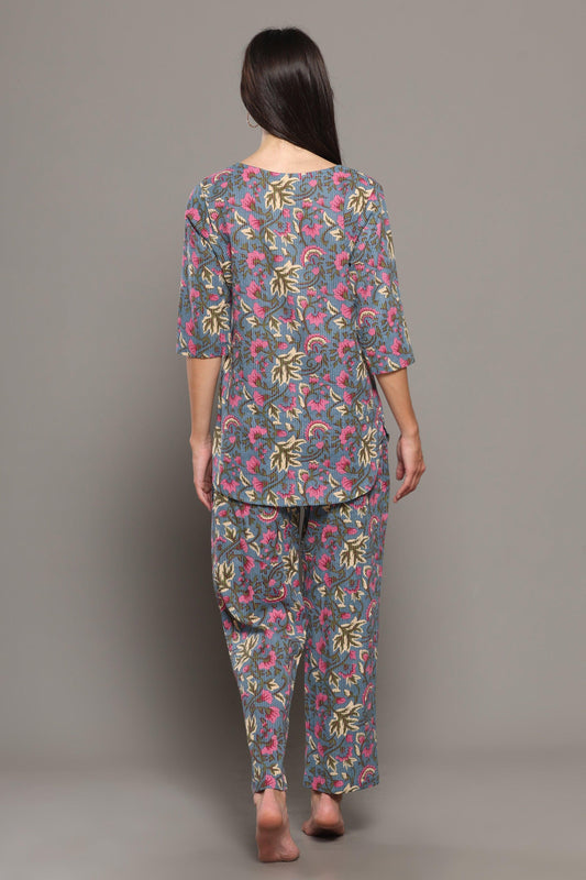 Grey Floral Cotton Printed Loungewear Co-ord Set