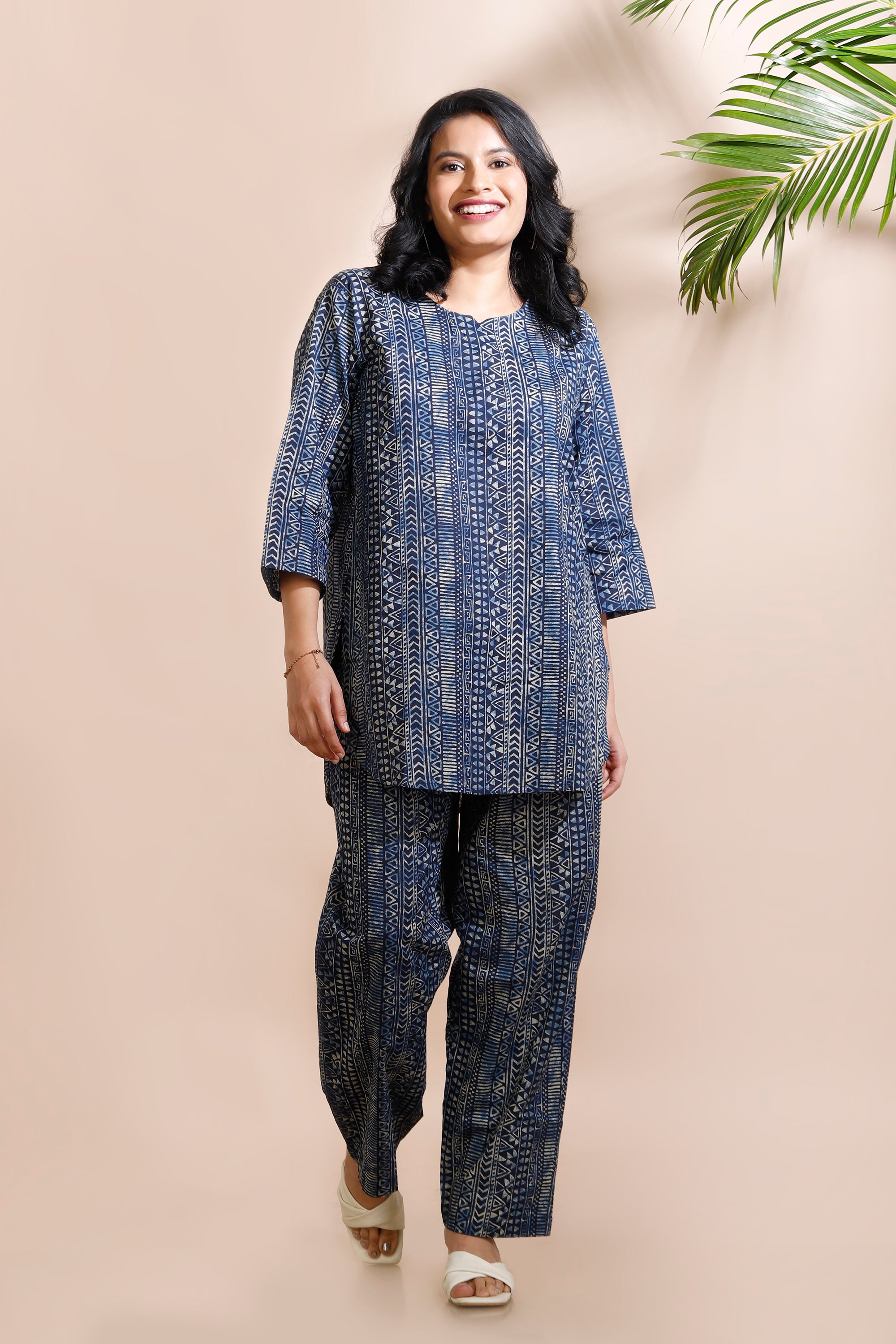 Pink Indian Motif Butta Print Cotton Loungewear Long Kurta Co-ord Set