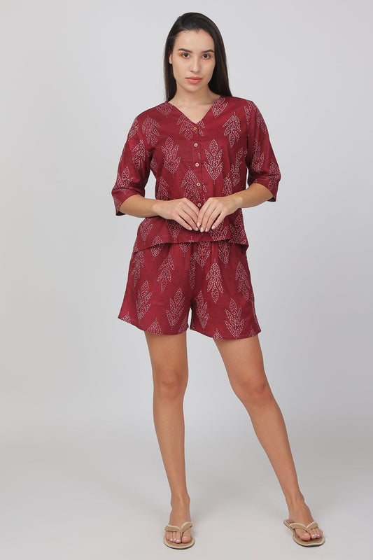 Maroon Cotton Nightsuit