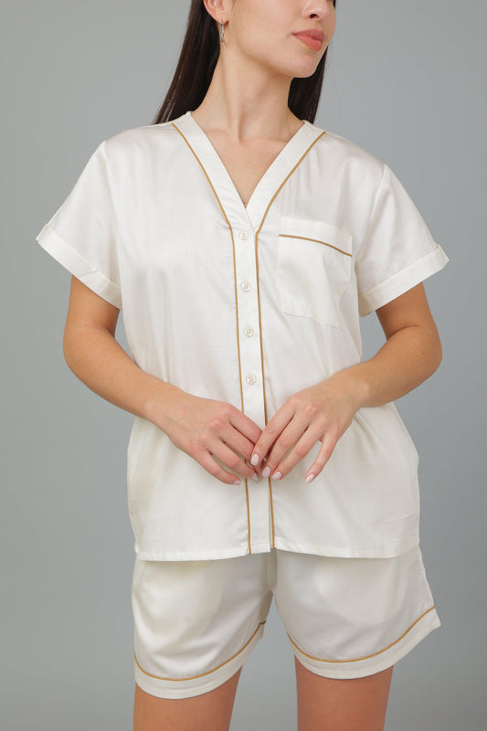 Solid Colour Cotton Shorts Night Suit Set